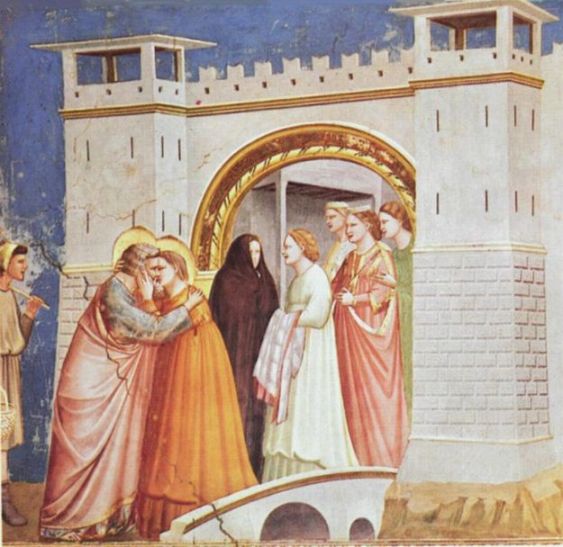 ヨアキムがエルサレムに下っていくと、アンナは神殿の黄金門のところで待っていた。二人は、子を宿した幸福を感謝しつつ、抱き合う。