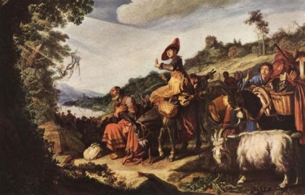 | 新天地を探しに生まれ故郷を離れ、家族と雇い人、大きな家畜の群れを連れてカナンへ向った。 彼らはハランまで来るとそこにととまった。しかし、神がアブラムに言った。「わたしが示す方向へ行きなさい。」 アブラムはカナンの地へ入った。神がアブラムに「あなたの子孫にこの土地を与える」と言った。アブラムはそこに祭壇を築いた。 |