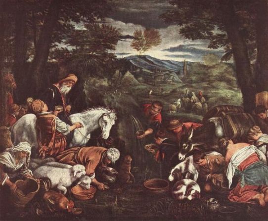 | シナイ山に近いレフィディムへ来たとき、一行は今度は乾きに苦しんだ。モーセが岩を打つとそこから水がほとばしり出た。マサ・メリバのモーセの泉である。 | |