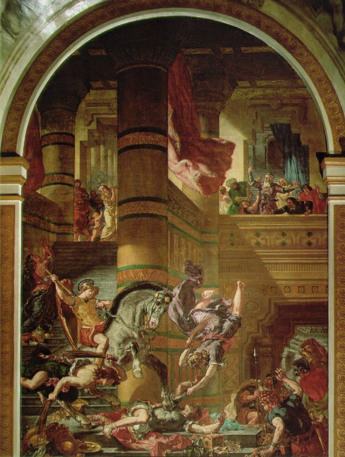 神殿を追われるヘリオドロス 1854-61 Oil and wax on plaster 751 x 485 cm サン・シュルピス聖堂聖天使礼拝堂 パリ