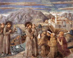 | ゴッツォリ 「聖フランチェスコの生涯 8.アレッツォの悪魔の駆逐」 1451−52 |サン・フランチェスコ聖堂 モンテファルコ フレスコ |