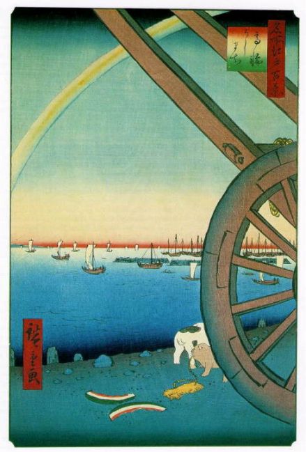広重の作品は西洋絵画の印象派の画家たちに、驚きを与える。ここで広重の作品を数点見ておこう。改めて見てみると、大胆で簡素な構図に驚く。