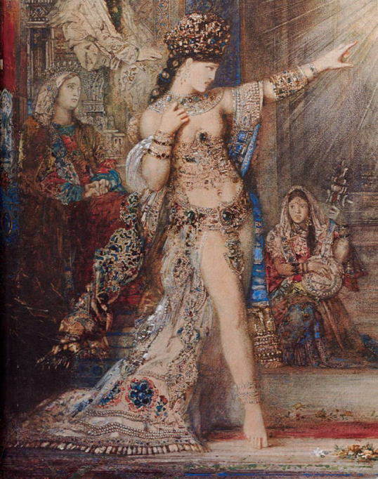 | 数多くの「運命の女」を描いたモローであるが、中でも好んで描いたのは「サロメ」である。 踊るサロメの目の前に、血の滴るヨハネの首が突然に現れる。 華麗で、幻想的で、不気味な作品。 文学者ユイスマンスが「さかしま」の中で |