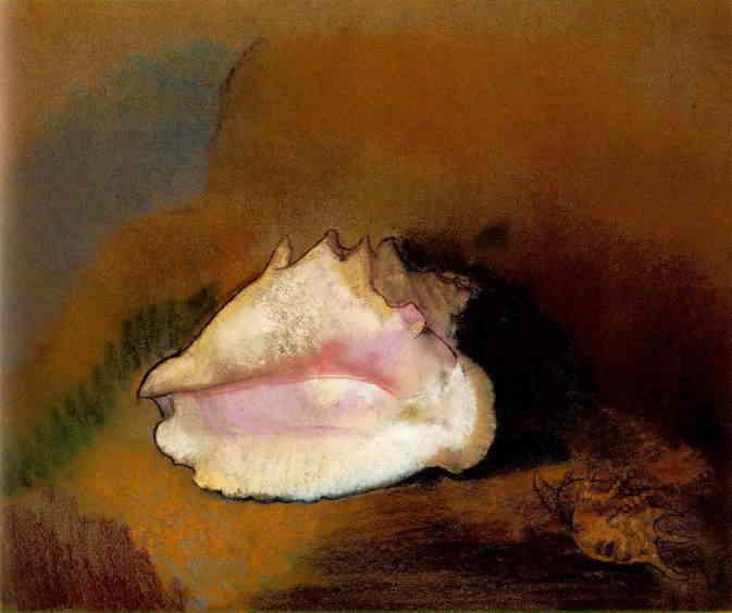 | 1840年、ボルドーに生まれる。病弱だったため、学校には親しめず、デッサンと音楽を楽しんだ。ボルドーの美術館で、ミレー、コロー、ドラクロワ、モローなどに感銘を受けたという。 父親の希望もあって、建築科を受験するが、失敗。絵画に集中するようになる。 ジェローム教室へ通ったが、アカデミックな教育に敵意を抱き、数か月で止めてしまった。 ルドンは印象派の画家たちと、同じ世代である。しかし、印象派の感覚的であるだけの世界に不満を持っていた。 ルドンは、もっと、想像力を大切にしたかったし、独自のイメージを創り上げていきたかった。 印象派の色彩表現に、惹かれながらも、あえて、白黒の版画を利用し、想像力を磨いた。ルドンが色を使い出したのは、50歳を過ぎてからである。 植物・微生物学者クラヴォーとの出会いに強い感化を受ける。クラヴォーはルドンに顕微鏡の中の世界や生命の神秘について語ったばかりではなく、ボードレール、ポオ、フロベール、スピノザ、インド哲学や詩をも教えた。 銅版画家ブレダンも、怪奇な幻想風景をえがいていたが、ルドンも大きな影響を与えられた。 はじめの30年くらいの間は、木炭素描、石版画、銅版画などを使用して、白と黒の世界に埋没した。色彩よりも黒がはるかに優れた精神の代理者と考えた。 石版画集として、『夢の中で』『エドガー・ポオに』『ゴヤ讃』『聖アントワーヌの誘惑』、銅版画集に『悪の華』などがある。 50歳代終わりくらいから、色彩の世界に専念するようになる。綺麗な色を使いながらも、黒の時代の謎と不安が影を引いているような作品であった。 後年、ナビ派の画家たちはルドンのことを「われらのマラルメ」と呼び、敬意を払った。 死後、シュルレアリストたちは、幻視、幻覚、ファンタジー性があり、ルドン自身が作品を無意識的方法と述べたことから、シュルレアリズムの先駆者と見た。 |